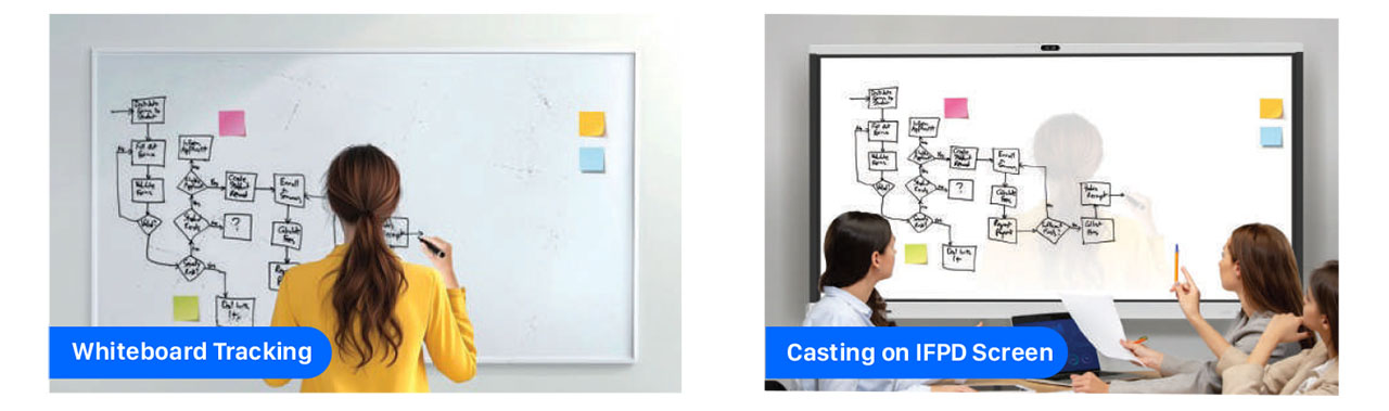 FA Pro 內(nèi)置 AI 智能(néng)攝像頭,可(kě)實時(shí)追蹤并識别白(bái)闆區(qū)域,支持人(rén)物(wù)與"手寫內(nèi)容的(de)半透明(míng)顯示,同時(shí)通(tōng)過筆(bǐ)迹增強功能(néng)提升文(wén)字清晰度,使畫(huà)面更易閱讀(dú)。全面優化(huà≠)教學與演示效果,打造更專業(yè)、高(gāo)效的(de)互動體(tǐ)驗。