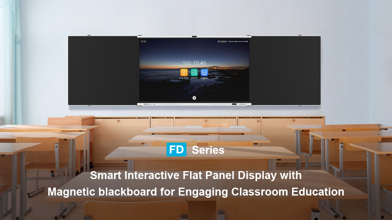 FD 系列将大(dà)尺寸交互智能(néng)平闆與磁性黑(hēi)闆完美(měi)融合,适用(yòng)于多(duō)種教學場(chǎng)景,全面提升多(duō)媒體(t≠ǐ)展示效果、互動課堂體(tǐ)驗與協作(zuò)學習(xí)效率,打造現(xiàn)代化(huà)多(duō)元教學環境•。