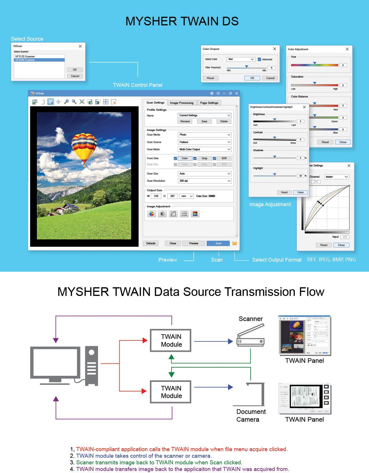 麥哲TWAIN DS集成多(duō)種圖像算(suàn)法及輸出格式,為(wèi)掃描儀硬件(jiàn)制(zhì)造商開(kāi)發<之首選,它可(kě)搭配可(kě)集成掃描開(kāi)發底層之驅動程式,快(kuài)速于運用(yòng)¶程序上(shàng)被調起TWAIN界面,适用(yòng)于平台掃描儀,多(duō)功能(néng)事(shì)務機(jī),數(shù)碼攝像頭等硬件(jiàn)設備。