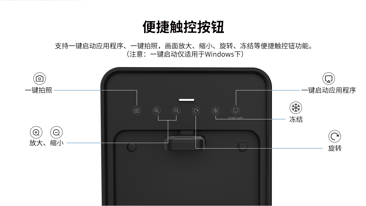 | 按鍵功能(néng) | 旋轉、放(fàng)大(dà)縮小(xiǎo)、凍結、一(yī)鍵啓動、一(yī)鍵拍(pāi)照(zhào) |
