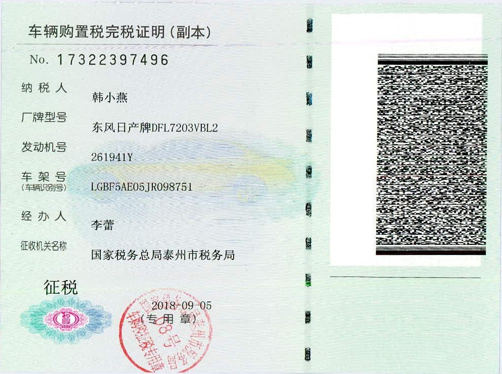 機(jī)動車(chē)銷售統一(yī)發票(piào)識别
