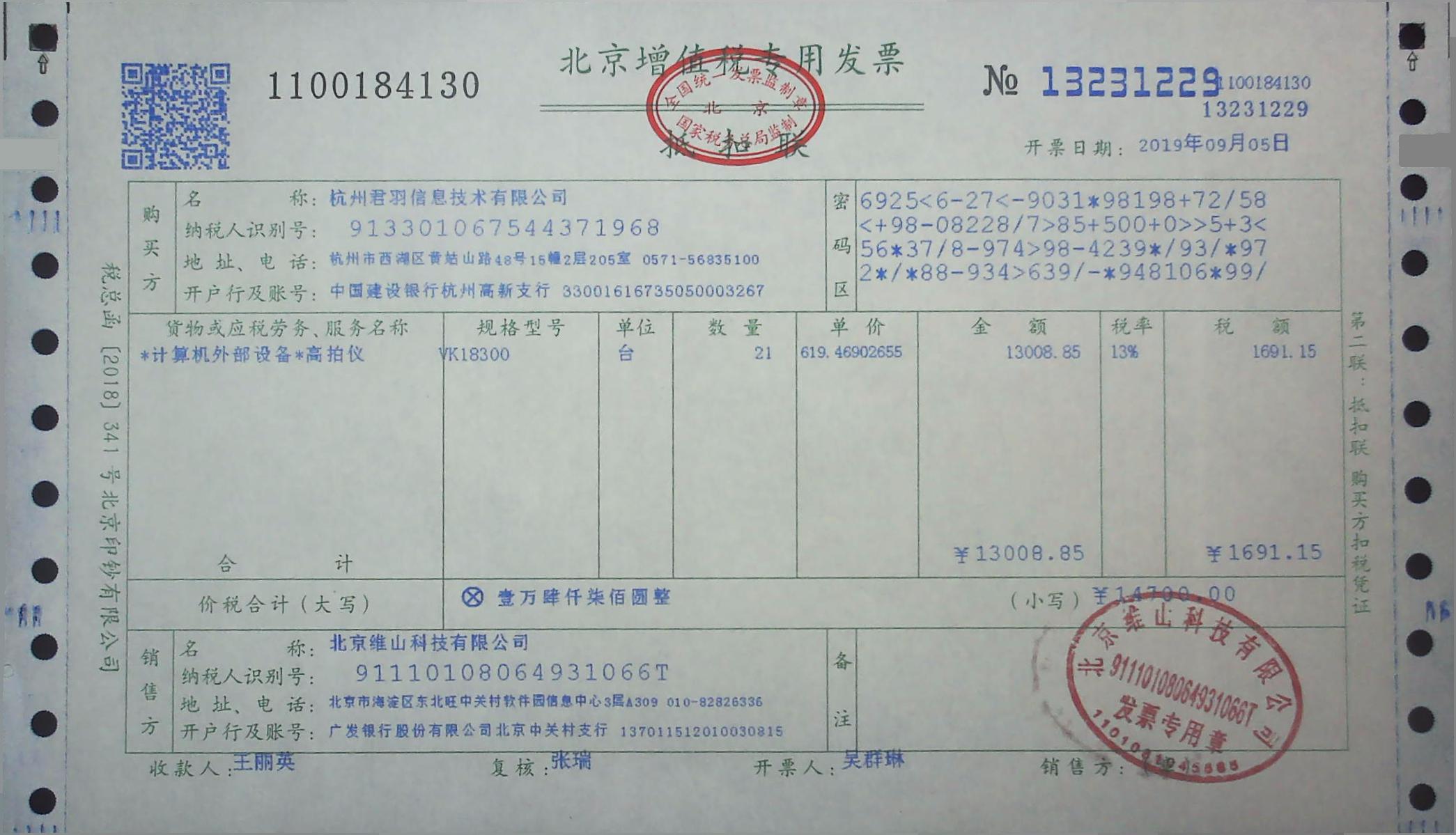 機(jī)動車(chē)銷售統一(yī)發票(piào)識别
